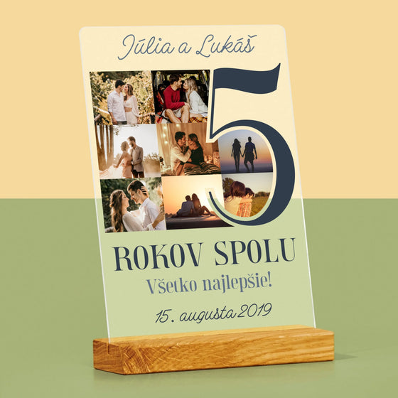 €19,99Jednotková cena /NedostupnéFotokoláž: 5 Rokov Spolu - Tlač na akrylové sklo LED
