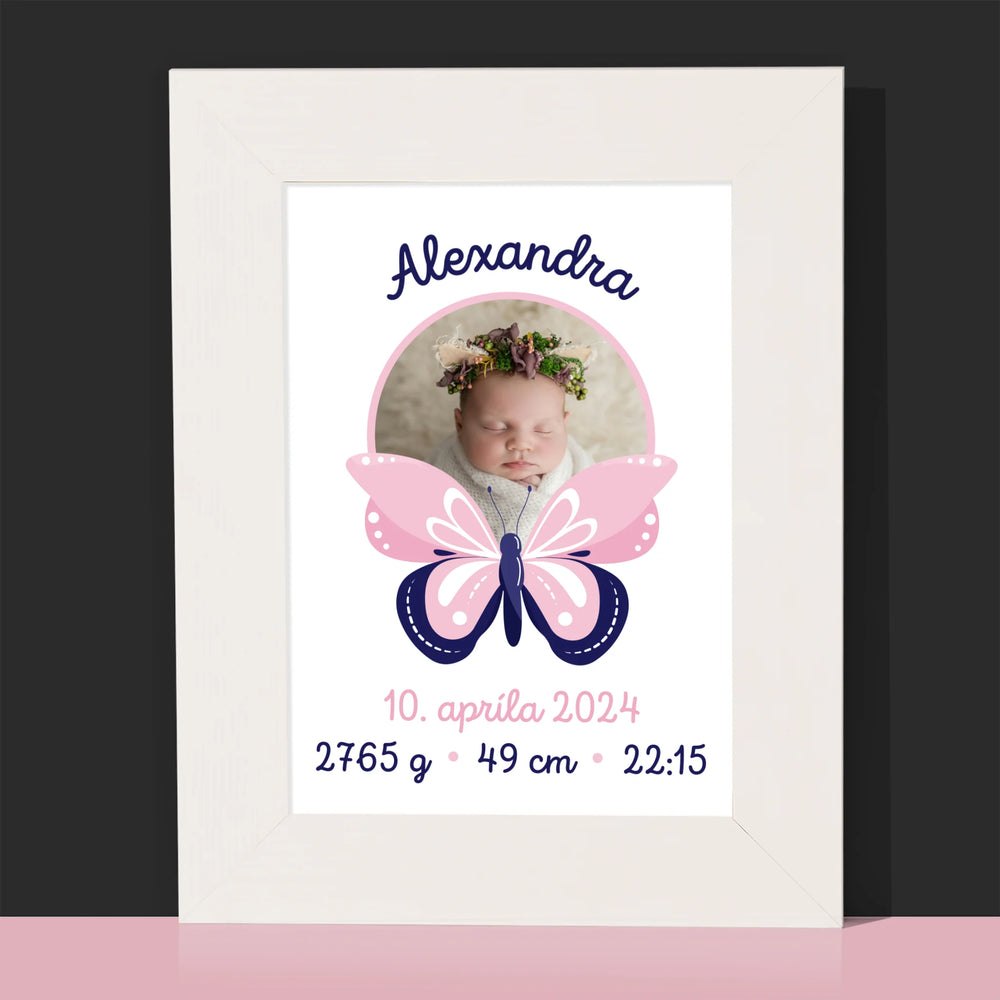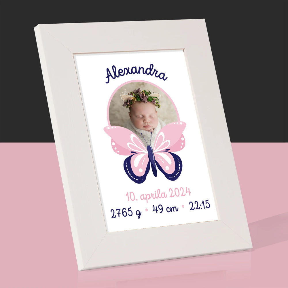 Údaje Narodenia Dieťaťa: Narodenie Dieťaťa Motýľ - Rámček na fotografiu