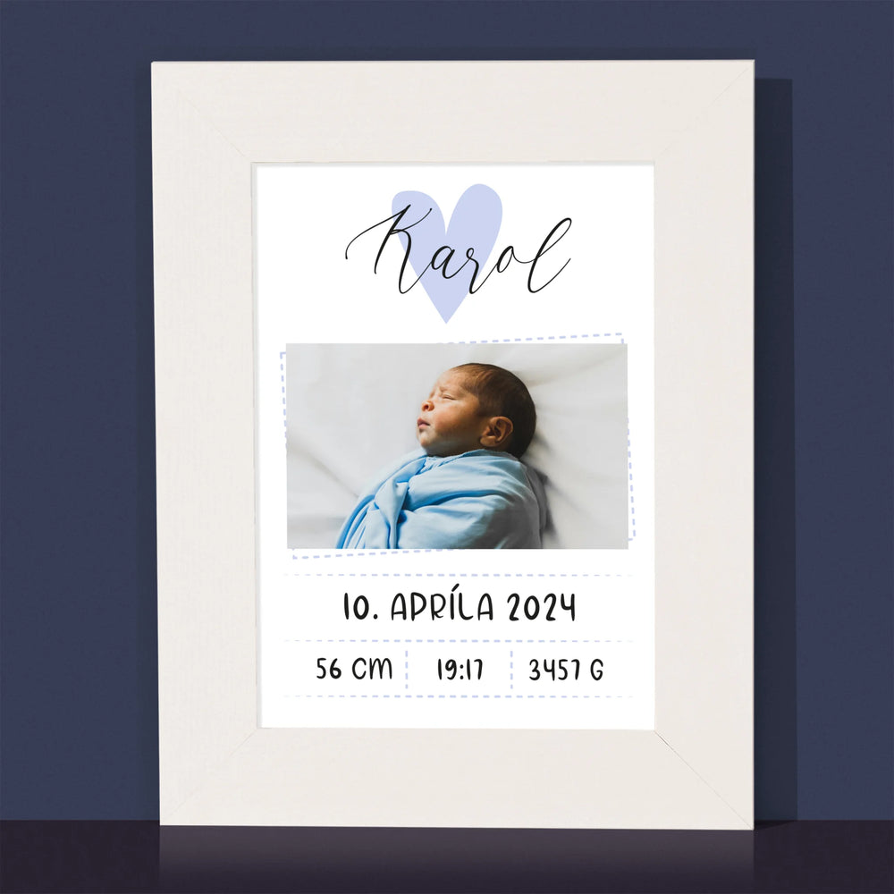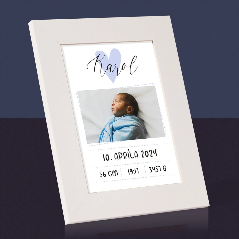 Údaje Narodenia Dieťaťa: Narodenie Dieťaťa Srdiečko Chlapec - Rámček na fotografiu