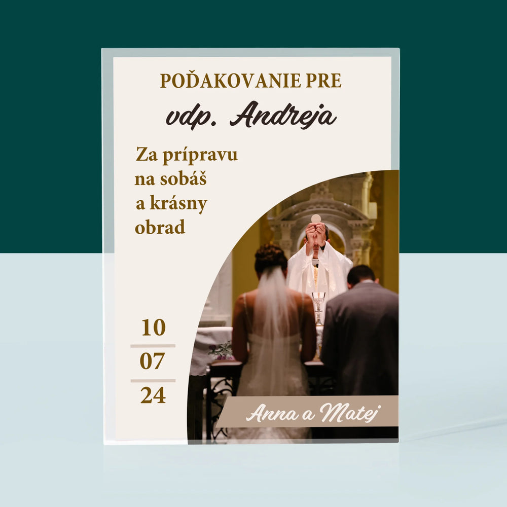 Fotografia A Podpis: Poďakovanie Božiemu Služobníkovi Svadba - Akrylový Blok (Vertikálne)