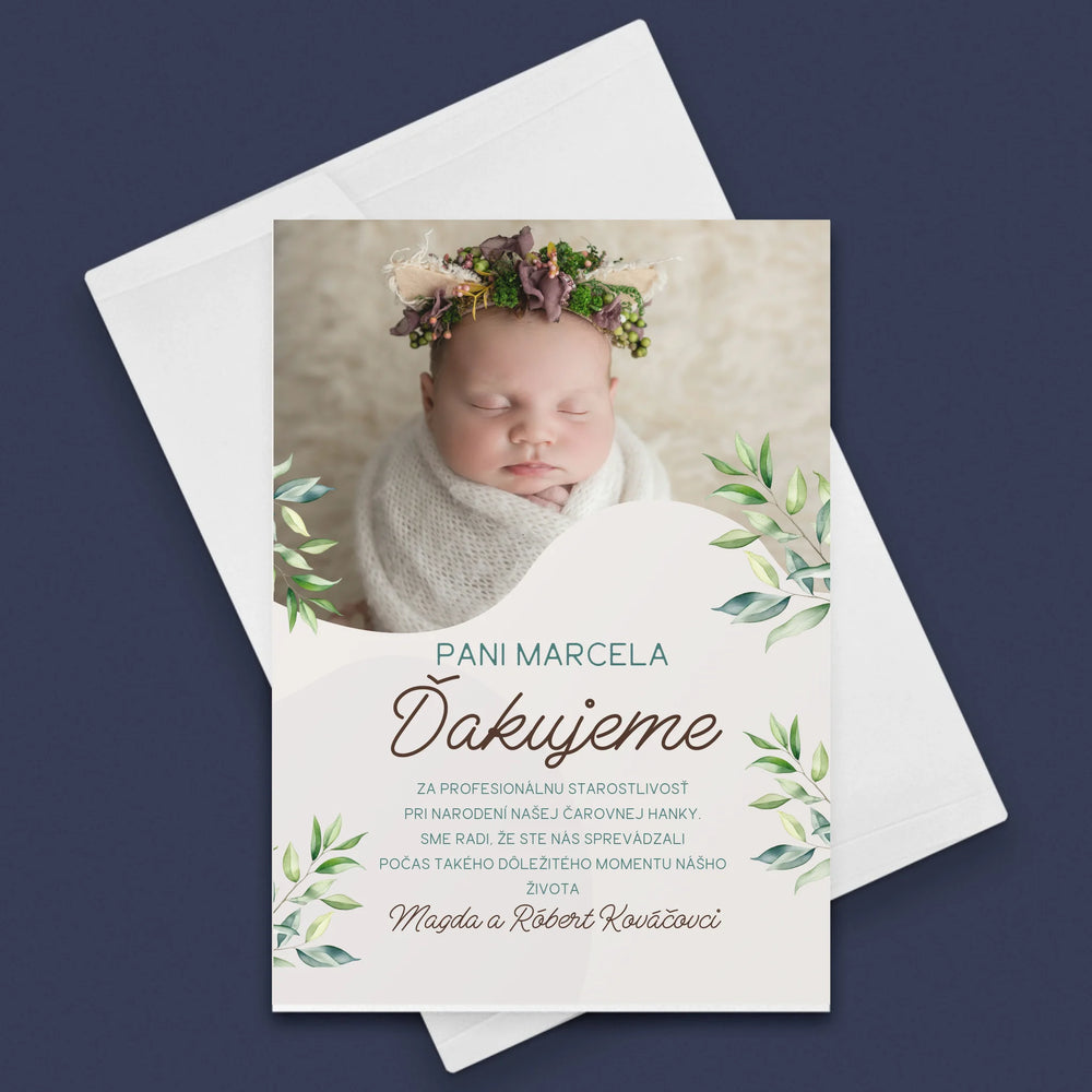 Fotografia A Podpis: Poďakovanie Pre Pôrodnú Asistentku - Kartička s prianiami