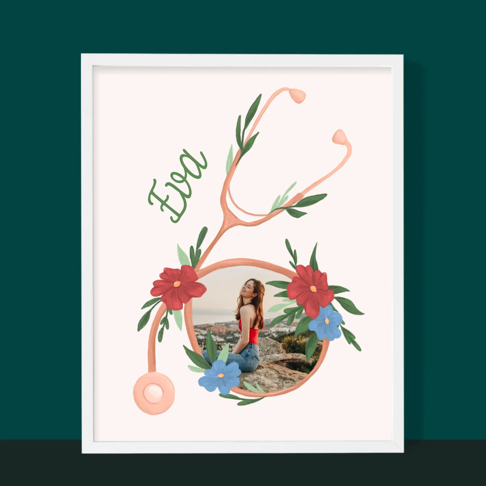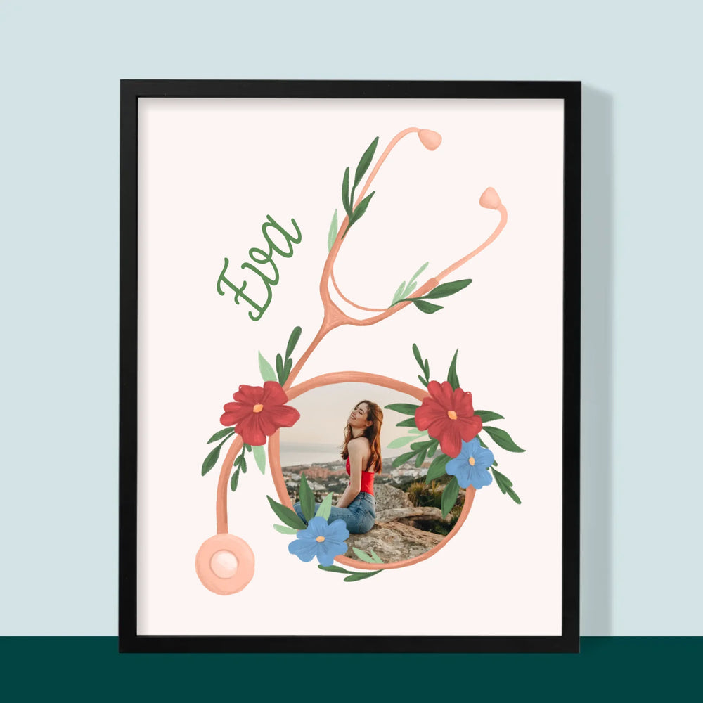 Fotografia A Podpis: Stetoskop Kvety - Zarámováná tlač