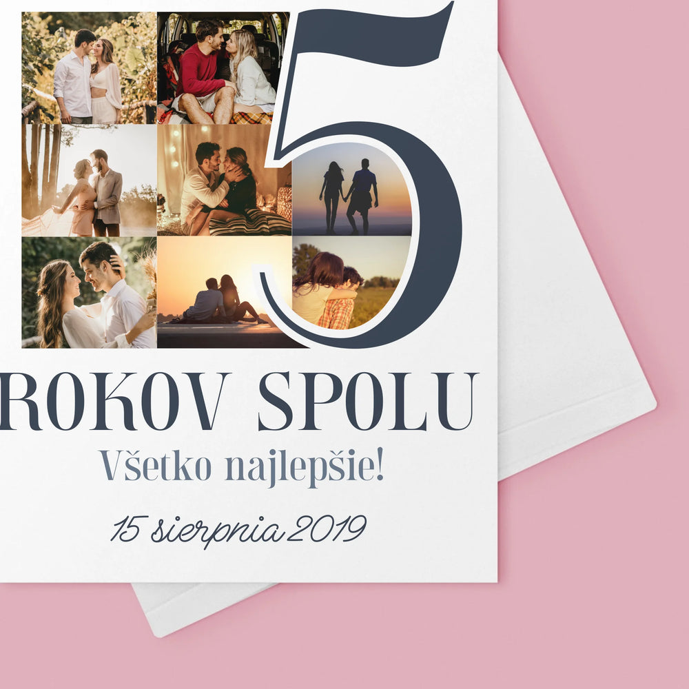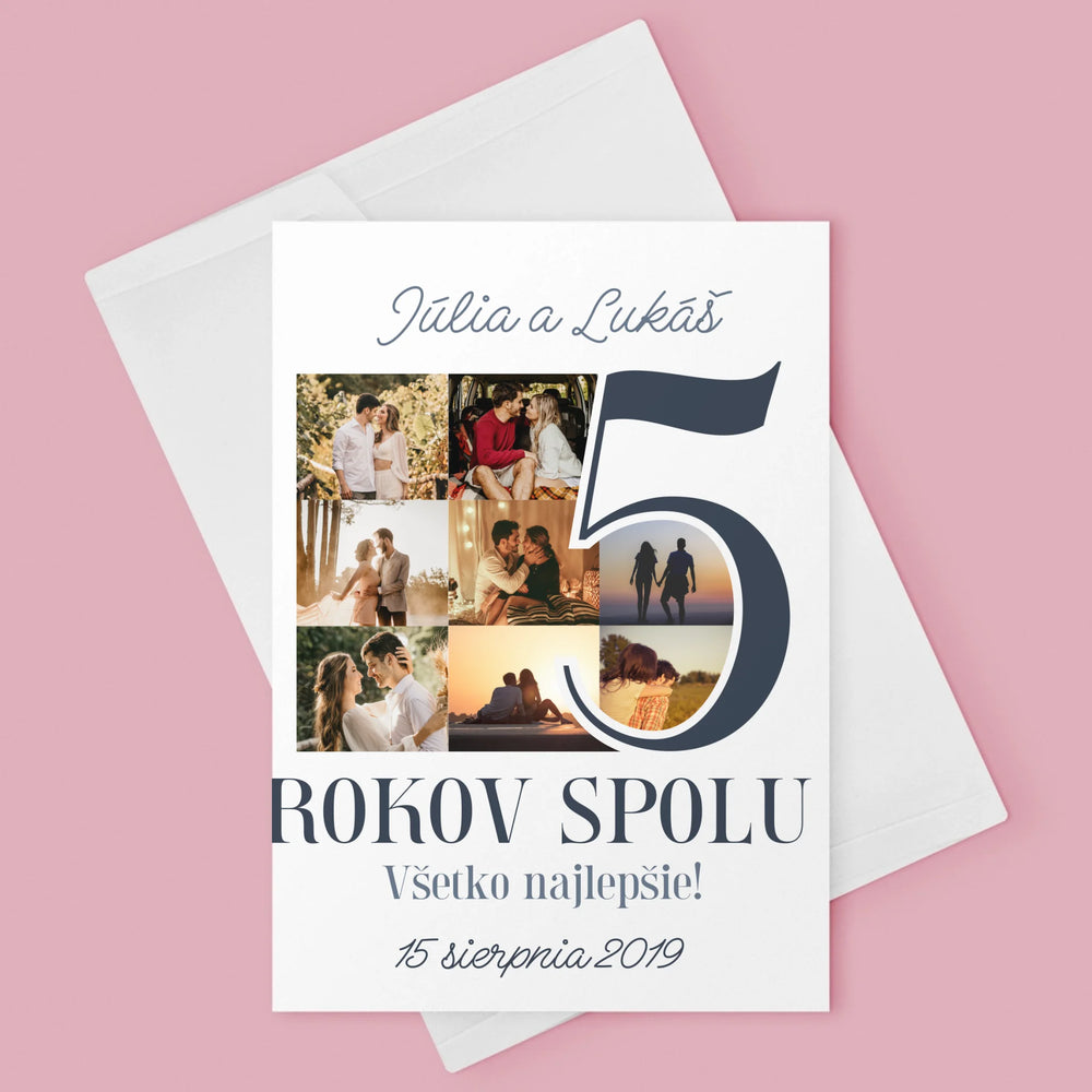 Fotokoláž: 5 Rokov Spolu - Kartička s prianiami