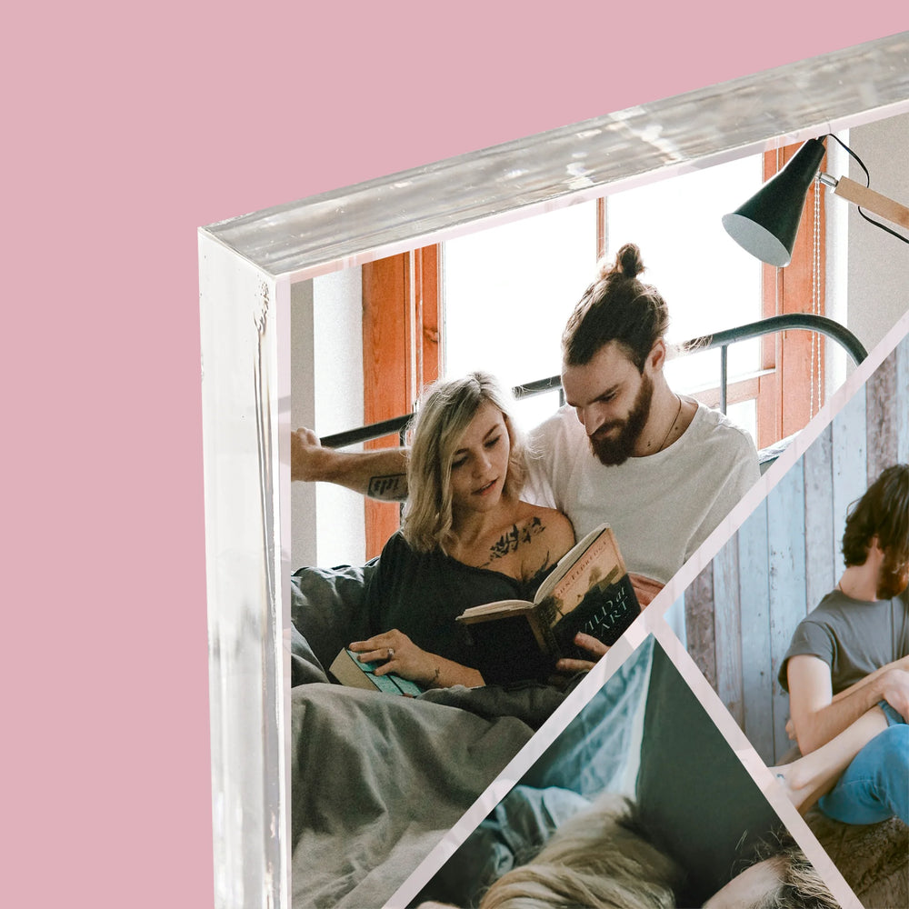 Tlač na 2 cm hrubý, bezfarebný akrylový blok (plexisklo) s personalizovaným vzorom podľa vlastného výberu.