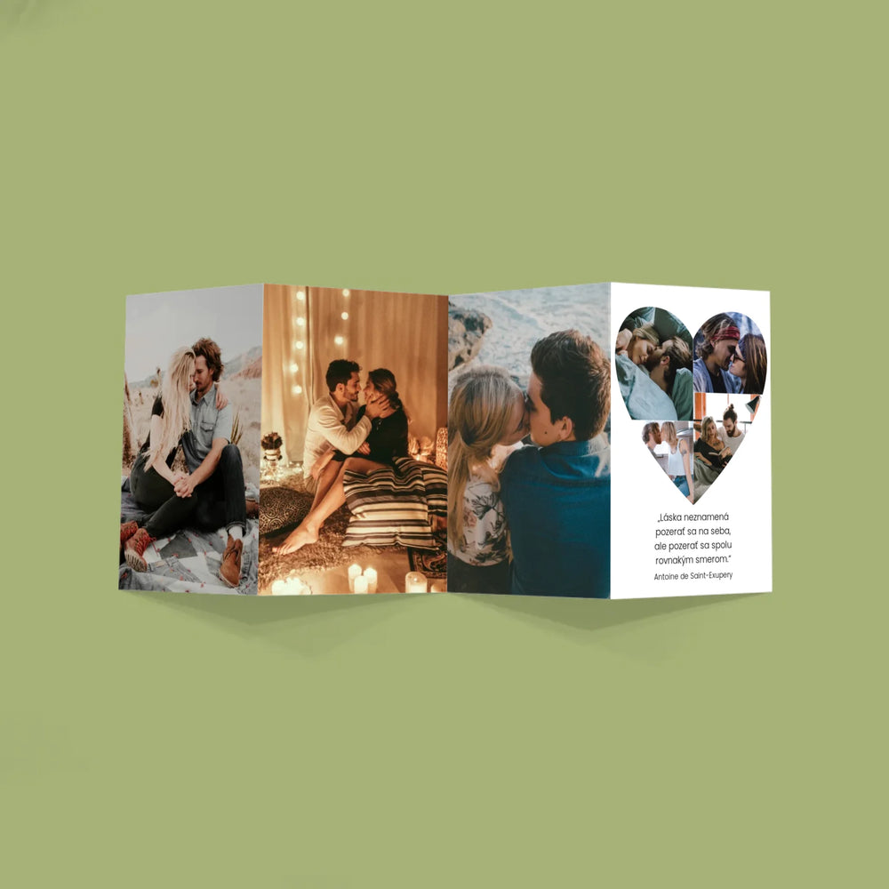 Fotografie, ktoré si vyberiete, budú vytlačené digitálnou technológiou na kvalitný papier s gramážou 300 g/m2. Harmonika sa skladá z niekoľkých fotografií (6-8 v závislosti od vzoru).
