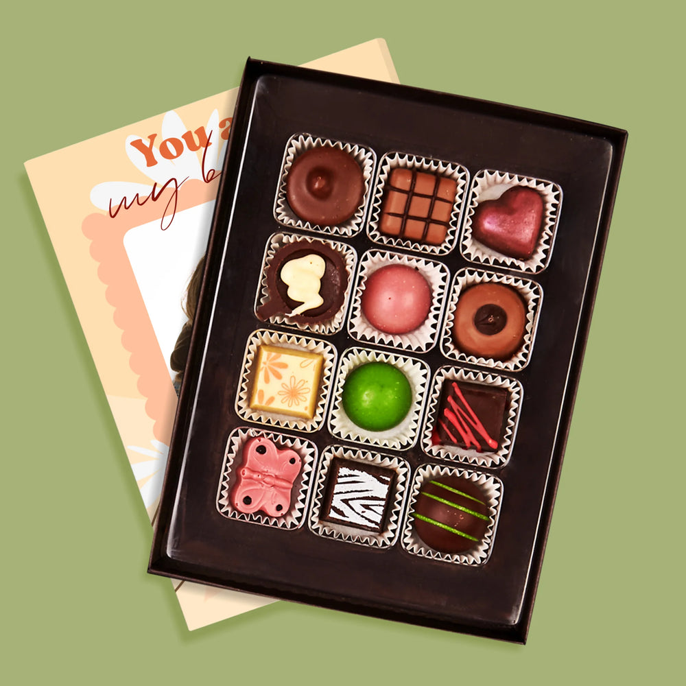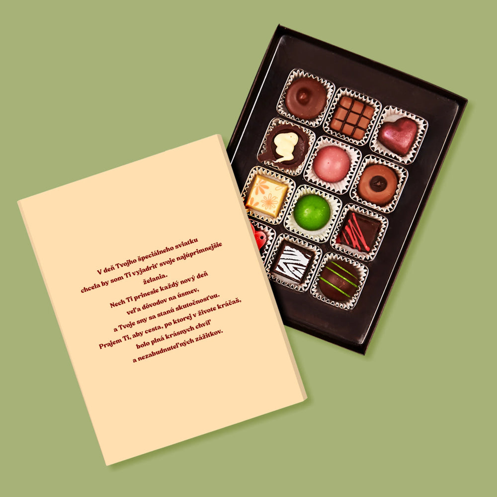 Lahodné belgické čokoládové pralinky v elegantnej krabičke s možnosťou vlastnej personalizácie.