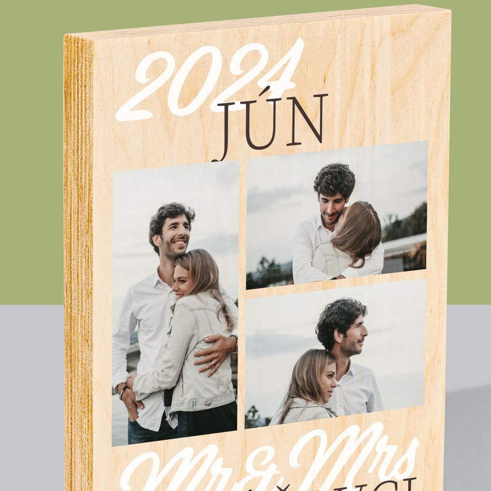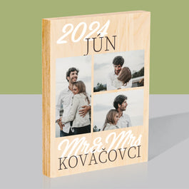 Fotokoláž: Mr&Mrs Dátum - Tlač na drevo