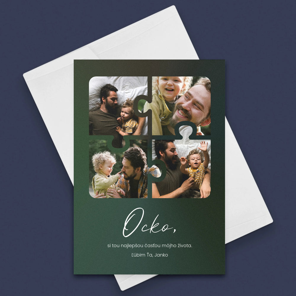 Fotokoláž: Puzzle Fotografie Pre Ocka - Kartička s prianiami
