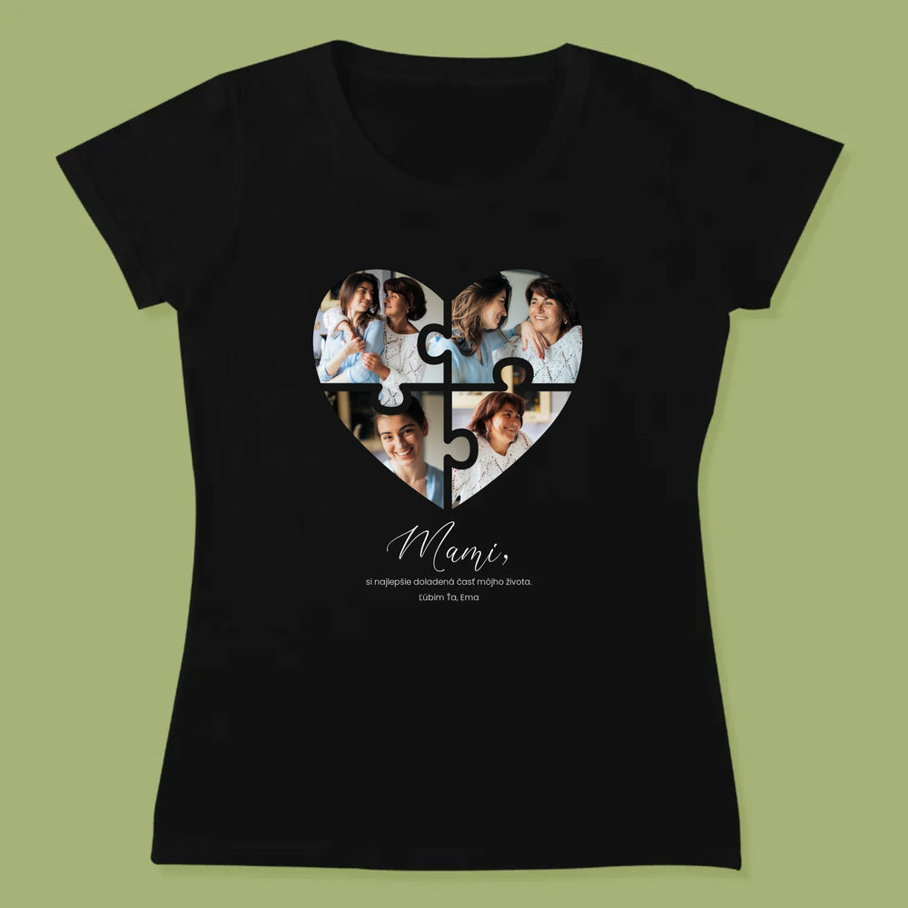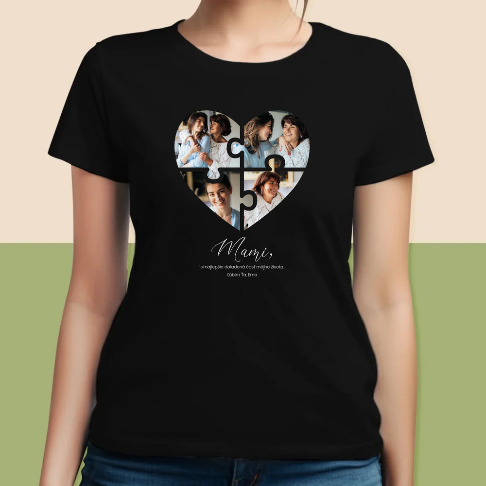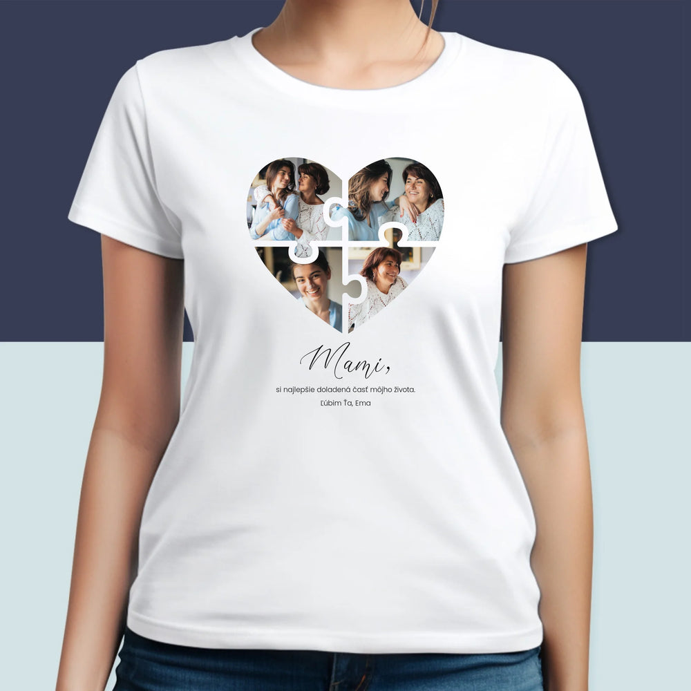 Fotokoláž: Puzzle Srdce Pre Mamu - Dámske tričko
