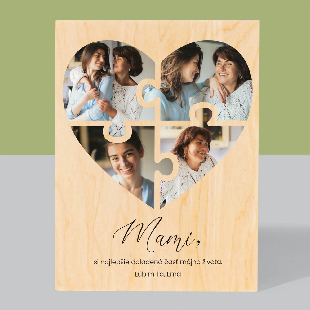 Fotokoláž: Puzzle Srdce Pre Mamu - Tlač na drevo