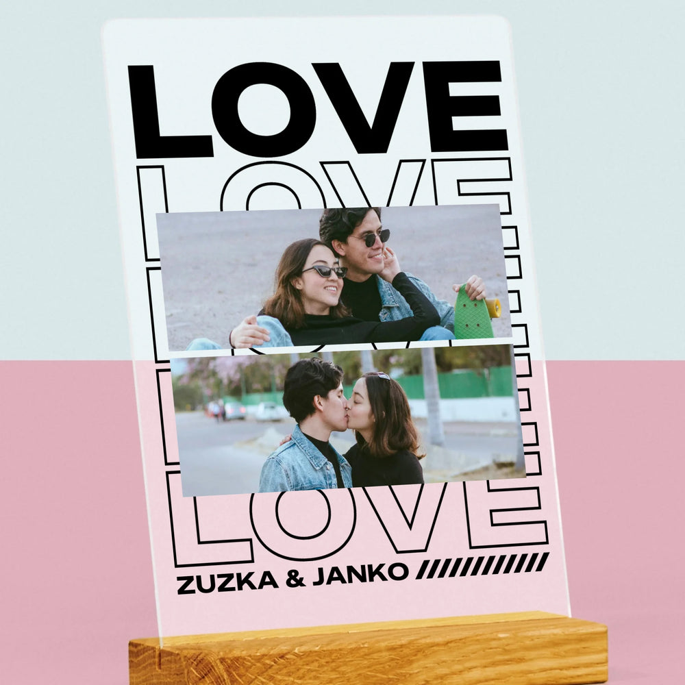 Fotokoláž: S Nápisom Love - Tlač na akrylové sklo LED