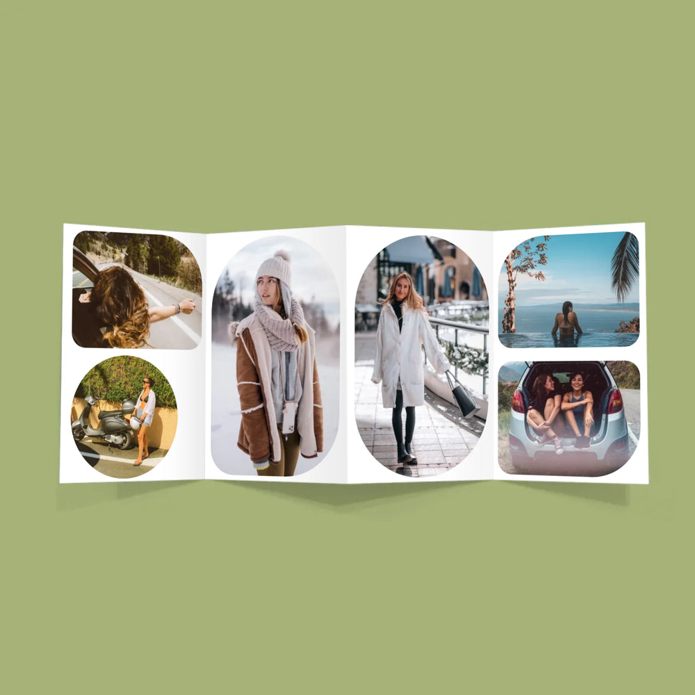 Fotografie, ktoré si vyberiete, budú vytlačené digitálnou technológiou na kvalitný papier s gramážou 300 g/m2. Harmonika sa skladá z niekoľkých fotografií (6-8 v závislosti od vzoru).