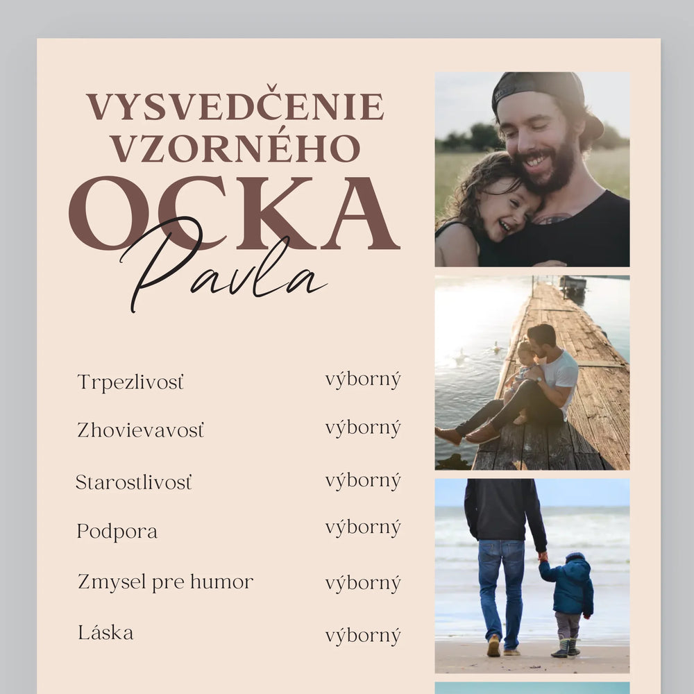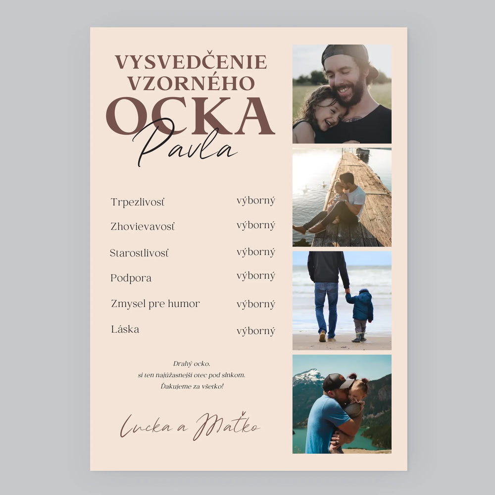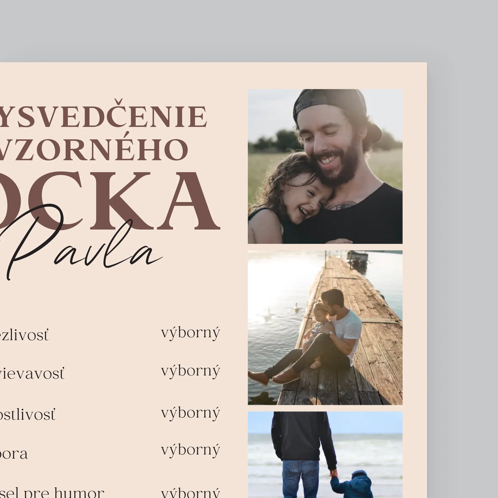Fotokoláž: Vysvedčenie Vzorného Ocka - Zarámováná tlač