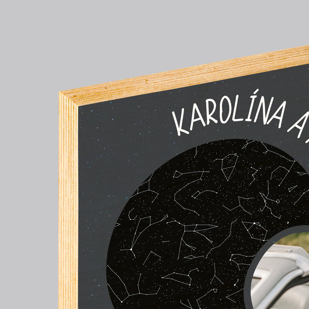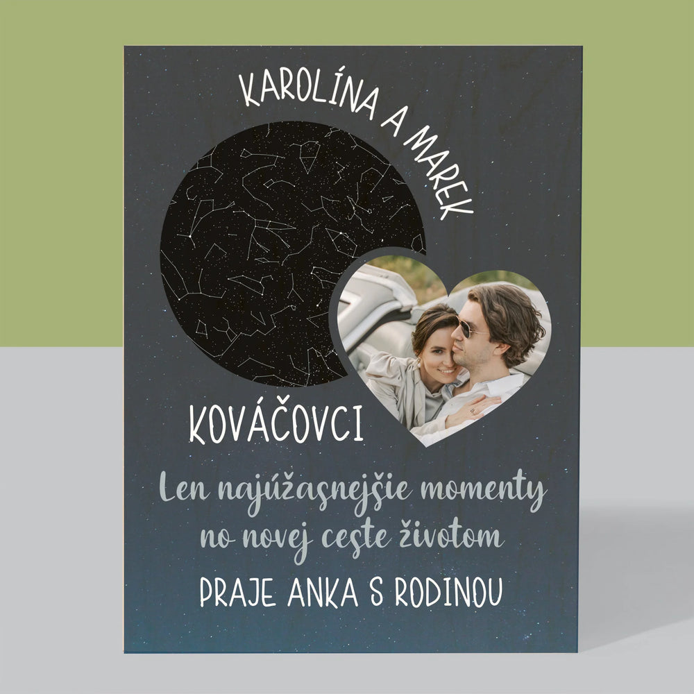 Mapa Hviezd: Nová Cesta Životom Svadba - Tlač na drevo