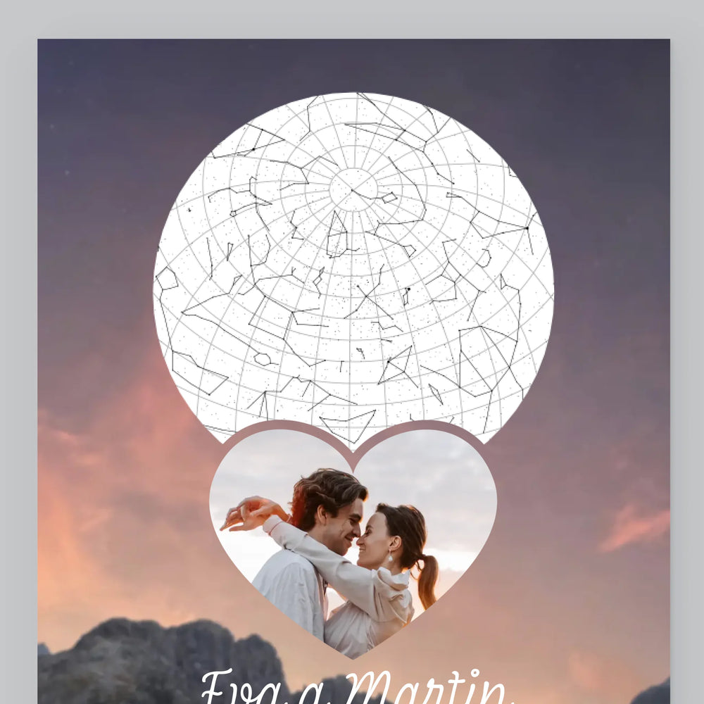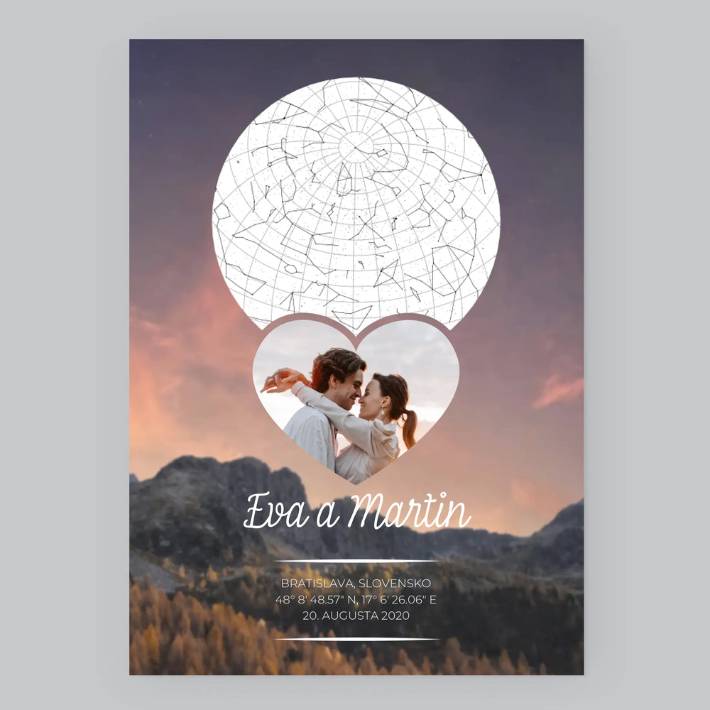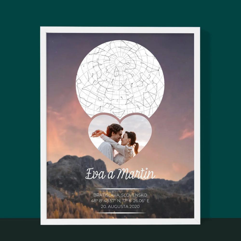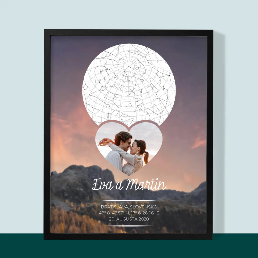 Mapa Hviezd: Zaľúbený Pár V Horách - Zarámováná tlač