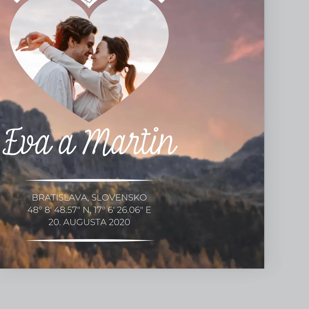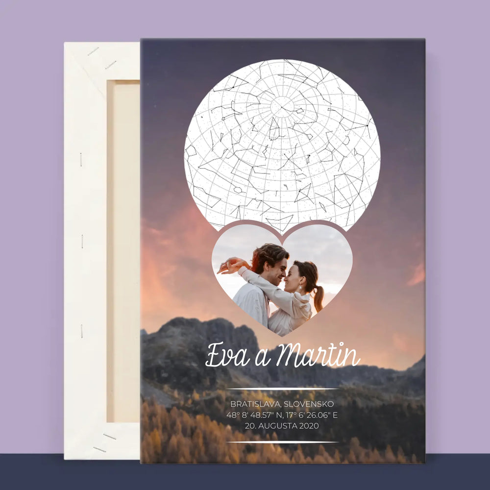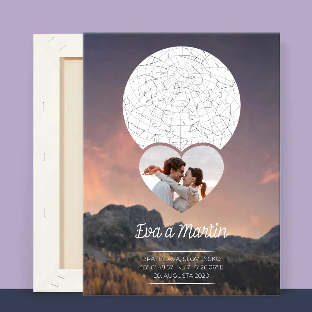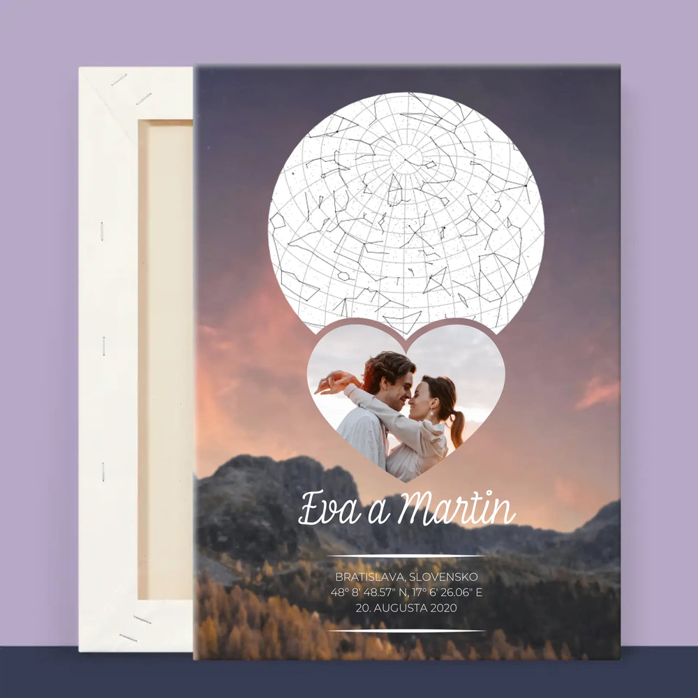 Mapa Hviezd: Zaľúbený Pár V Horách - Zarámováná tlač