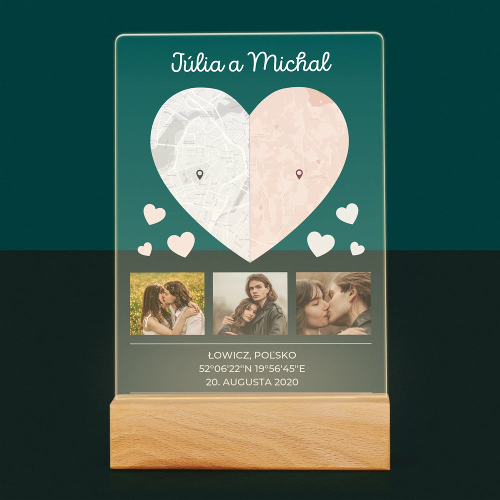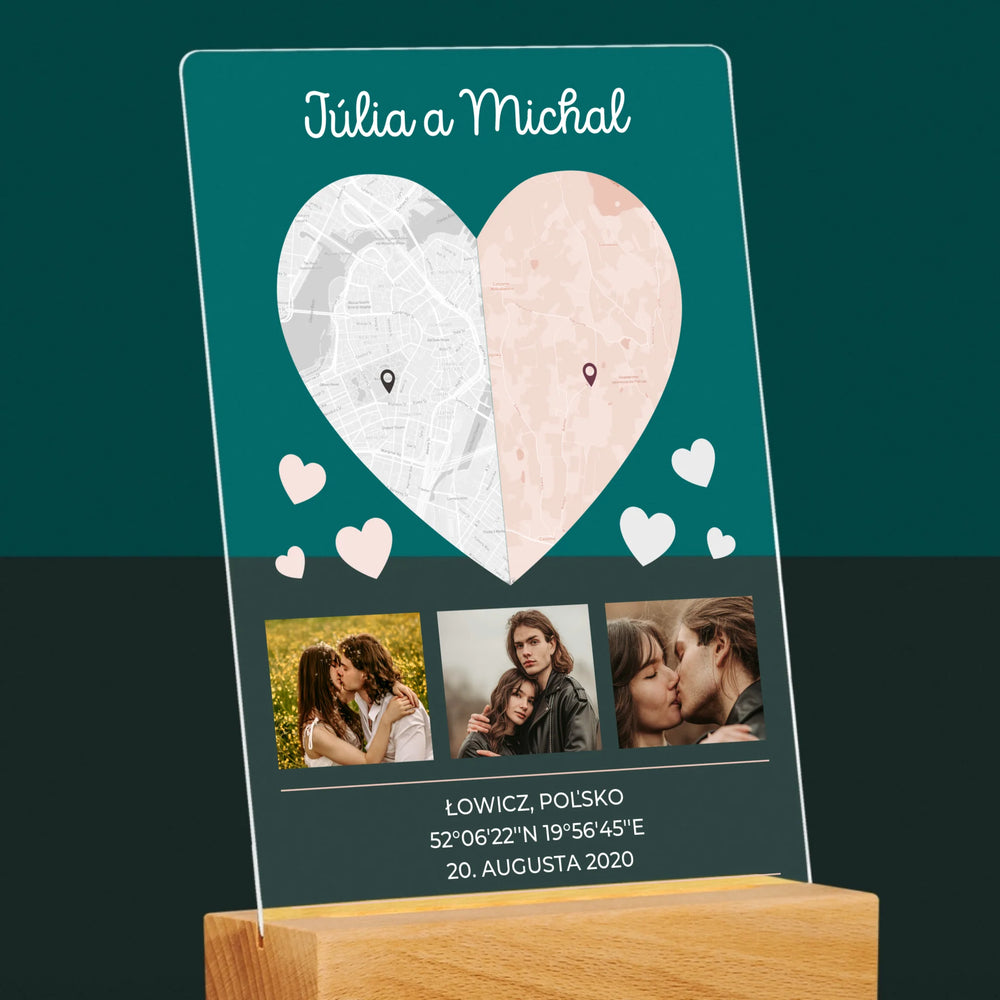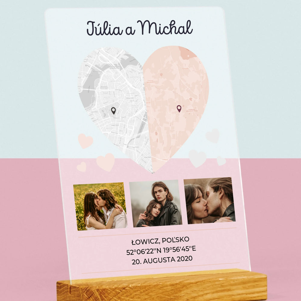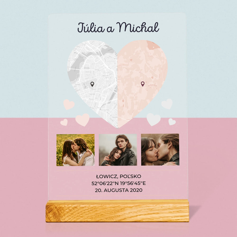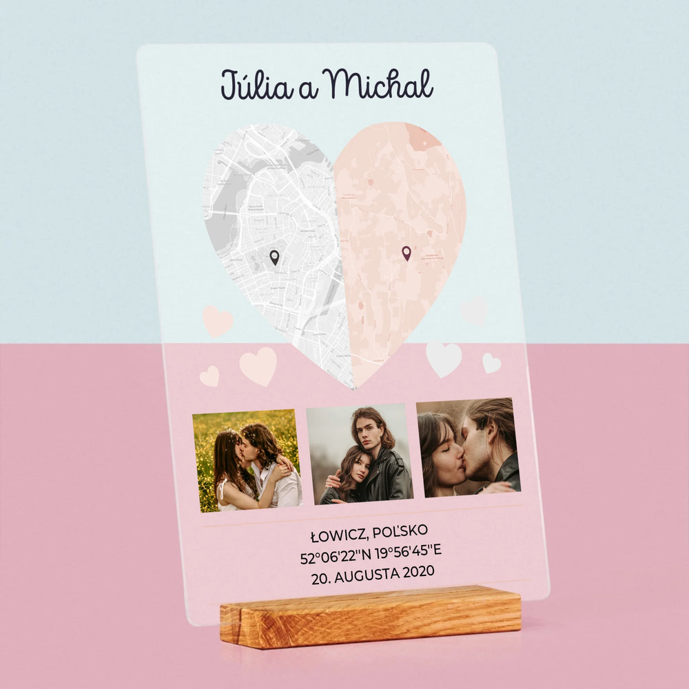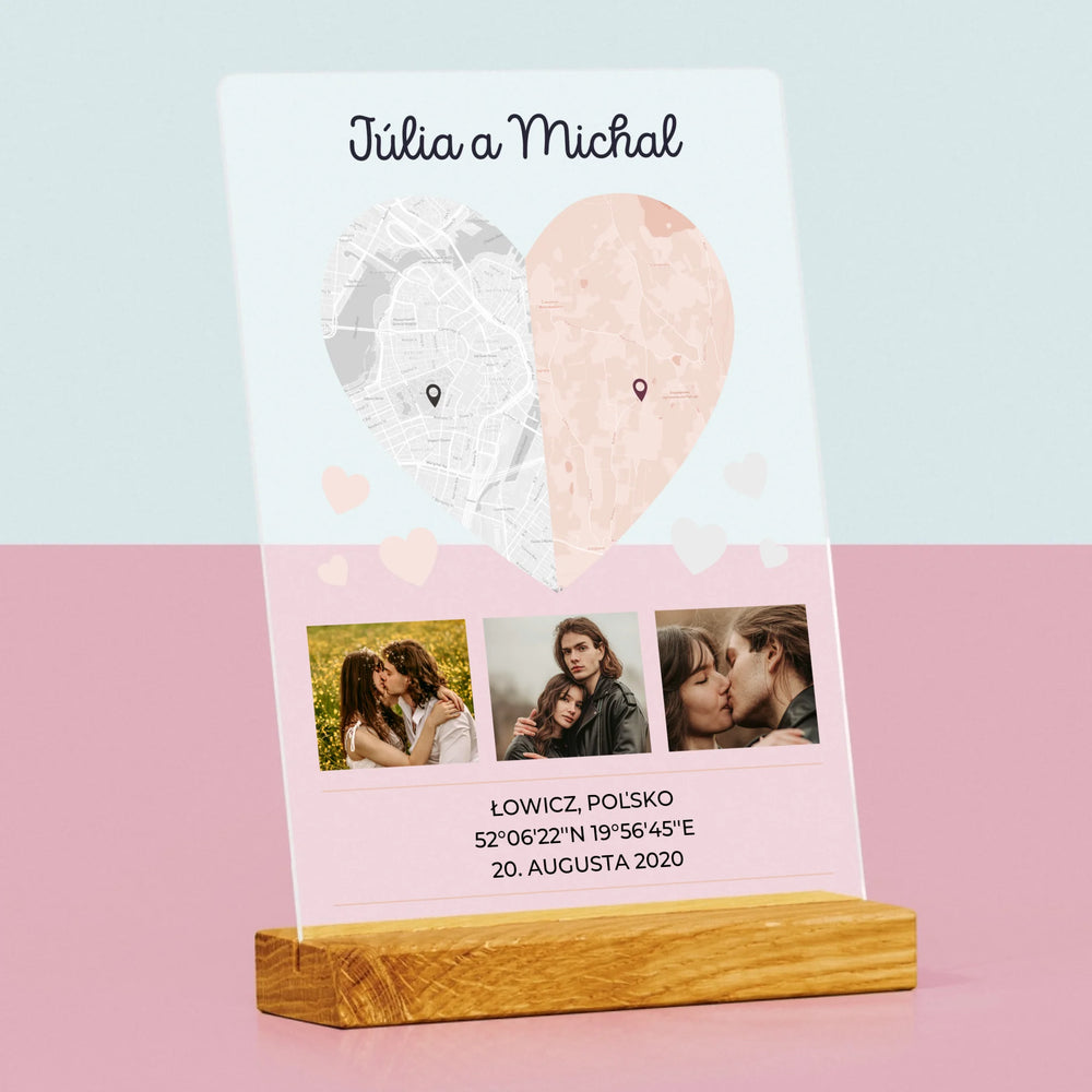 Mapa Mesta: Dve Polovice Jedného Srdca - Tlač na akrylové sklo