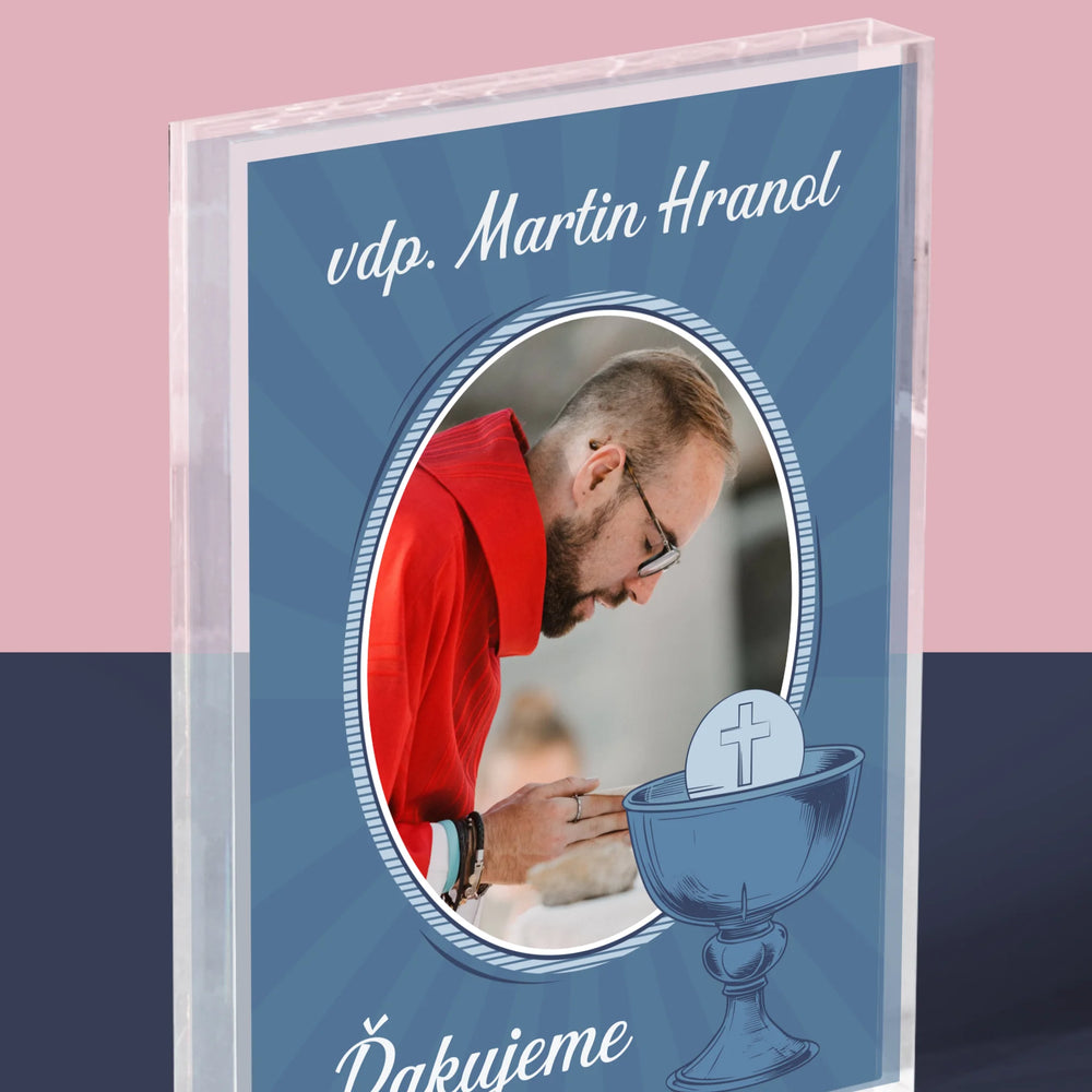 • Tlač na 2 cm hrubý, bezfarebný akrylový blok (plexisklo) s personalizovaným vzorom podľa vlastného výberu.