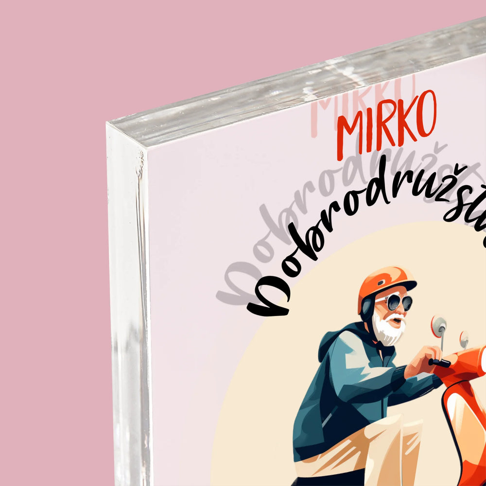 Tlač na 2 cm hrubý, bezfarebný akrylový blok (plexisklo) s personalizovaným vzorom podľa vlastného výberu.