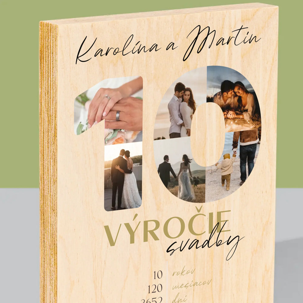 Slovo Z Fotografií: 10. Výročie Svadby - Tlač na drevo