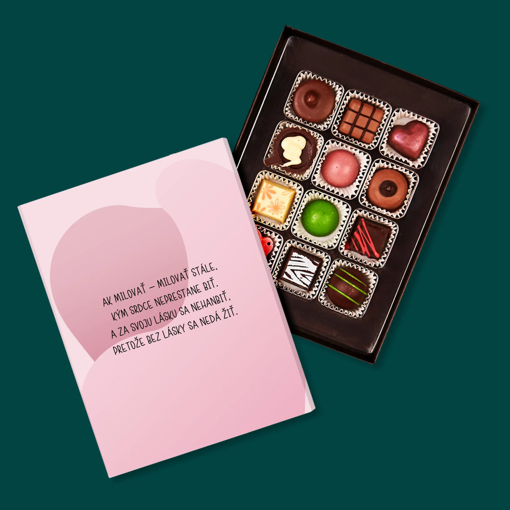 Lahodné belgické čokoládové pralinky v elegantnej krabičke s možnosťou vlastnej personalizácie.